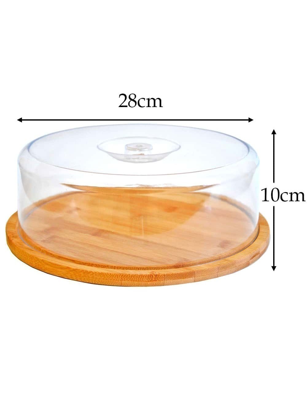 Porta Bolo com tampa Ecokitchen Bambu Porta bolo com base de bambu e tampa de acrílico, que protege o alimento de agentes externos e odores da geladeira. Também pode ser usado para armazenar tortas, pães, frutas, doces, queijos ou outro alimento que desejar. Produto feito de bambu 100% natural e renovável. Material leve, resistente, livre de odores e ecológico. Suas fibras não possuem poros, evitando o acúmulo de resíduos. Possui agentes bactericidas, que previnem o aparecimento de fungos e bactérias. Fácil de higienizar. Lavar com água morna, detergente neutro e uma esponja macia. Não utilize na máquina de lava-louças, evite abrasivos e produtos químicos. Armazenar em local seco e livre de umidade. Especificações Técnicas: Modelo: Porta bolo com tampa Material: PS e Bambu Dimensão: Diâmetro: 28cm Altura: 10cm