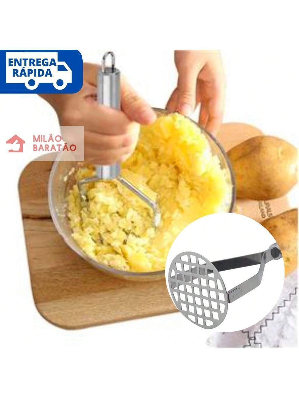 ENVIO IMEDIATO QUALIDADE GARANTIDA 01 AMASSADOR DE BATATAS LEGUMES ESPREMEDOR AÇO INOX Amassador Batatas Legumes Espremedor Aço Inox Cabo Reforçado Faça purês com praticidade e rapidez, feito em aço inox, auxilia você na preparação de receitas. O Amassador de batatas em aço inox, o utensílio que falta em sua cozinha para facilitar sua vida no dia a dia. Este eficiente item vai ser de grande uso em sua cozinha, facilitando o seu dia a dia na hora de preparar as refeições, feito de de aço inox material forte e duradouro este belo utensílio foi feito para quem busca mais praticidade no seu dia a dia. Produto moderno multifuncional este amassador em aço inox é super fácil de usar, seu manuseio é simples e eficiente, basta posiciona-lo sobre o que deseja amassar e pressionar para ter os seus alimentos prontos! Quer amassar batatas mais rapidamente? ter mais facilidade quando for fazer purê ou nhoque? aqui esta a sua solução para isso!!! com o amassador de batatas tudo fica mais fácil e leva menos tempo!!! Dimensões: 25 x 8,2cm Material: Aço Inox