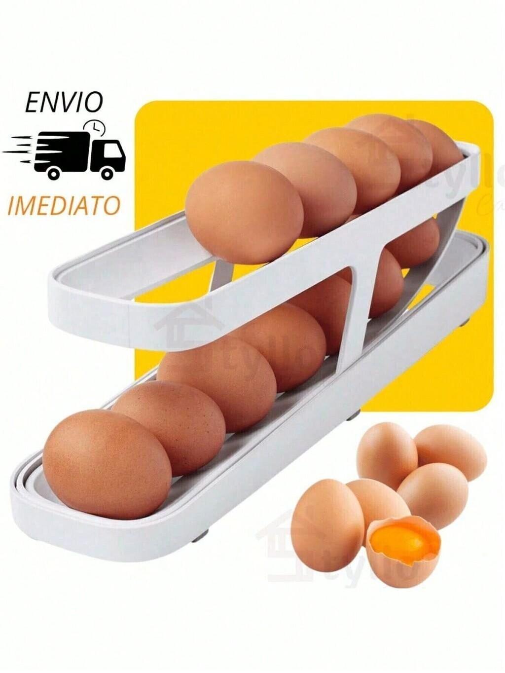 Porta ovos de 2 andares com dispensador automático para refrigerador - Rolling Egg Holder